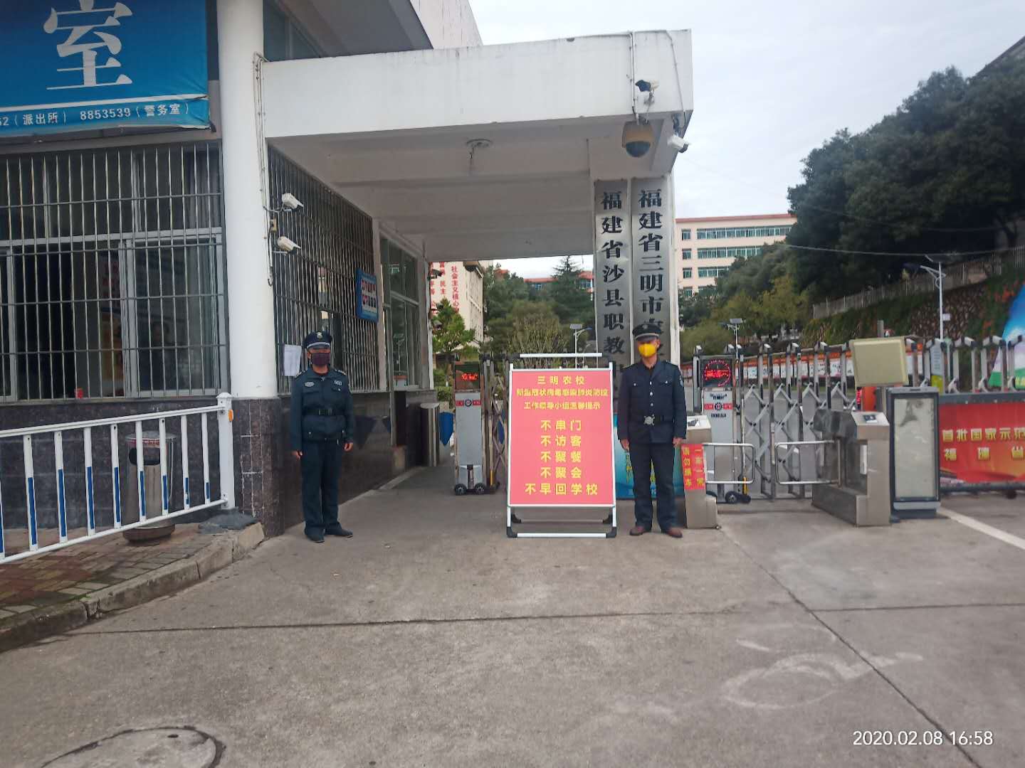 正值寒假,学校留守人员很少,防控难度不大。学校把主要精力用在宣传教育上。学校党委书记、校长、防控领导小组组长林木森不时在教工微信群和退休支部群发布文件政策和防范知识,还责令班主任将党中央和省、市疫情防控指挥部命令和精神传达到教工和学生本人。党委副书记、副校长、防控领导小组常务副组长罗世钦几乎每天都把正能量传递给师生。其他党委委员、防控领导小组副组长均通过多种方式对全校师生进行宣传,传递正能量。学校党政领导亲自带头值班值守,安排落实疫情防控工作、深入社区巡查、担任疫情防控志愿者。保卫处主任、防控领导小组成员陈兆华对学校的保安工作进行周密部署,并带领保安团队守好校门关口,认真落实教育部“五个一律”和全省“十一个一律”,严把校园进出关,决不允许校外人员擅自进入校园,确保校内安全无恙。他还冒着疫情风险,坚持天天到校察看,不留空挡,不留死角。这样既提高了师生的防范意识,也确保了下一步学校的安全。思政处动员全校班主任落实学生假期活动路径、交往情况、身体健康状况,做到每天一报,坚持“零报告”制度,尤其是对返回湖北过年的湖北籍学生、家庭中有从湖北返乡的小吃业人员进行跟踪。工会落实教工健康情况每日一报工作,对全校教职员工进行全面的摸排,尤其是对返回湖北过年的3位教职工进行密切跟踪和心理疏导。