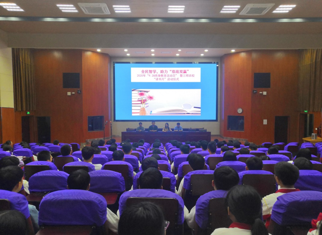 近日来,全省各地踊跃举办9.28终身教育宣传、全民读书月等相关活动,营造浓厚的终身学习、全民阅读氛围。kaiyun.com结合“书香墨香校园”创建工作,于9月28日晚上,以学校报告厅为主会场,各班级通过班班通收看,召开了2020年“9.28终身教育活动日”暨校园读书月启动仪式。