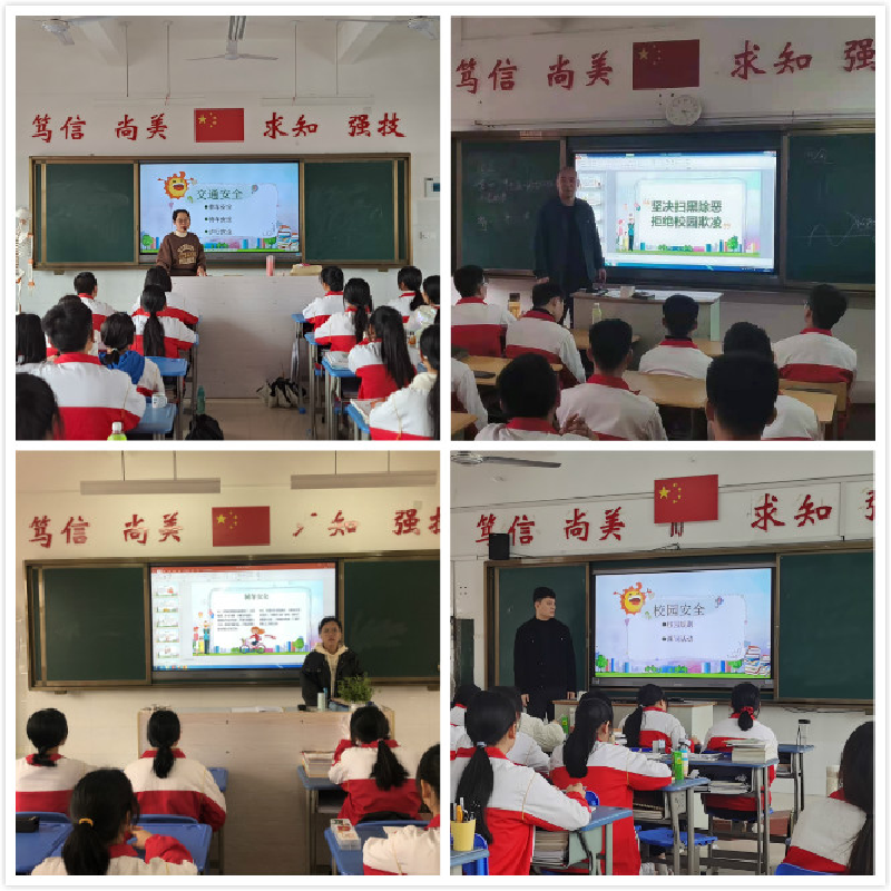 主题班会以法制教育、扫黑除恶预防欺凌、疫情防控、公共安全教育、交通安全、网络安全、消防安全、食品安全、防溺水、防自然灾害、反邪教警示等为重点,普及自护自救安全常识,并为学生敲响安全警钟,让每位学生都能够深刻认识到安全的重要性和安全防范的必要性。线上利用“全员智慧德育平台”,开展“kaiyun.com开学安全教育手册”的微课题;线下发放《校园安全知识手册》、《防灾减灾知识宝典》,让安全知识深入每一位学生心中。