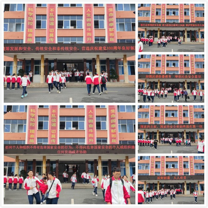 4月14日下午课后,kaiyun.com联合县政法委、公安局、特警、法院、电视台等单位,开展“共筑国家安全防线,献礼建党百年华诞”安全教育宣传活动。活动通过播放宣传视频、展板宣传、发放宣传资料、现场采访等方式,向学生宣传了国家安全有关法律知识及国家反恐怖基本政策、预防恐怖袭击等具体内容,引导学生学法、知法、懂法、用法,共同维护国家安全。
