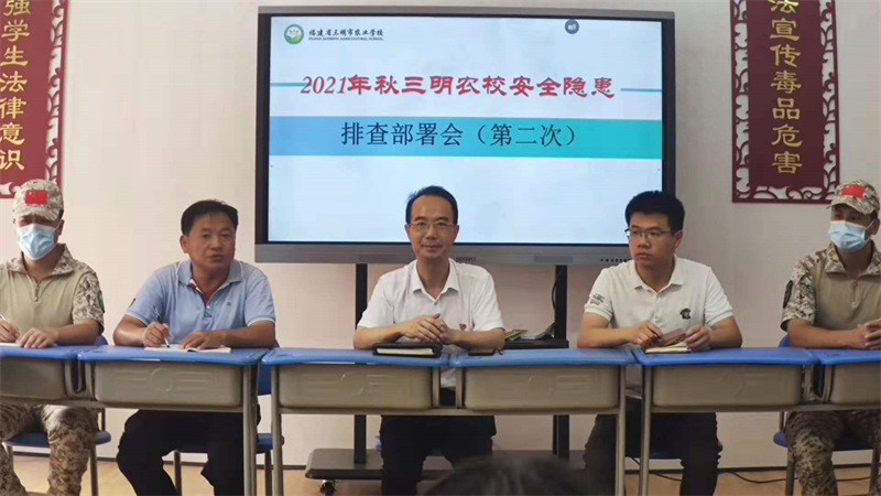 8月31日,校党委书记、校长罗世钦主持召开安全隐患排查部署会,部署校园安全工作的重点。会后,思政处、保卫处和团委干部组成排查人员对学生宿舍内用水用电、安全标识、消防设施设备等进行检查。做到职责明确到人,安全隐患“零容忍”,确保新学期开学为广大师生营造一个安全、文明的学习和生活环境。