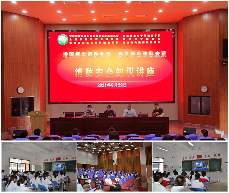为了进一步提高学校师生消防安全意识,增强全体教师生对火灾防范和抗御能力。9月23日,三明市农业学校邀请沙县区消防大队教官王文昌、蒋巧慧到校开展消防知识讲座。校党委委员、副校长江文林主持讲座,思政处林宏宇主任和保卫处陈柯龙副主任等领导出席,讲座主会场设在学校报告厅,各班级通过班班通收看。