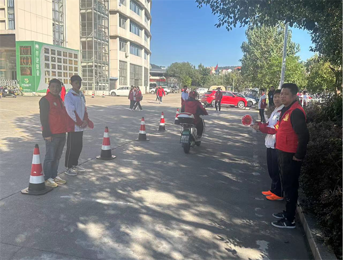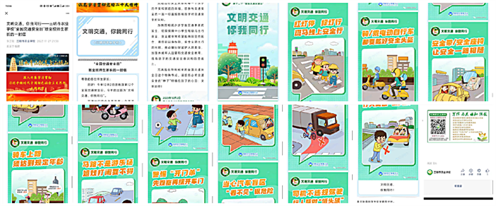 学生走出课堂,化身交通安全宣传员,积极参与交警大队组织的交通安全宣传活动;交通交通安全督导员,积极参与学校交通安全管理,与党员志愿者、护学岗教师一起参与交通安全督导。