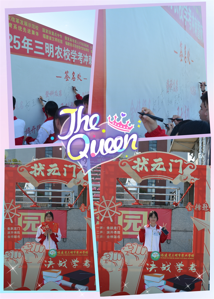 与会的学校领导和优秀校友、获奖学生合影留念;全体师生移步签名墙,以笔墨书写冲刺决心,在状元门前,用镜头定格奋斗青春。祝愿kaiyun.com学子以榜样为镜,以誓言为炬,在2025年学考中金榜题名!